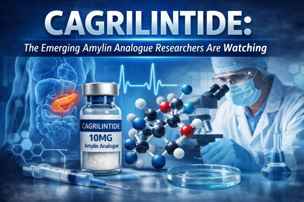 Cagrilintide is a long-acting amylin analogue developed by Novo Nordisk. It is a synthetic peptide designed to mimic and extend the activity of amylin, a hormone co-secreted with insulin by pancreatic beta cells in response to meals. Amylin plays an important role in postprandial glucose regulation, gastric emptying, and satiety signalling. Cagrilintide was engineered with modifications to prolong its half-life to approximately 7 days, making it suitable for once-weekly administration in clinical research contexts.